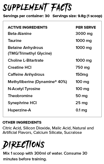 Pinhead is made with all sorts of highly-concentrated, active ingredients such as Beta-Alanine, Taurine, Creatine, Caffeine and Tyrosine - and thanks to its immediate surge of energy, this stuff is perfect for the serious gym-junkies out there!
